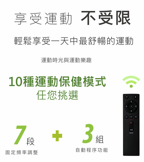 - 操控程式 : 7段固定頻率 +3組自動程式功能