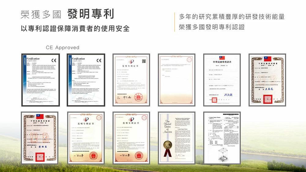 - 榮獲多國專利、台灣製造、安心有保障! 定速、定頻、定幅~